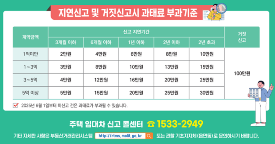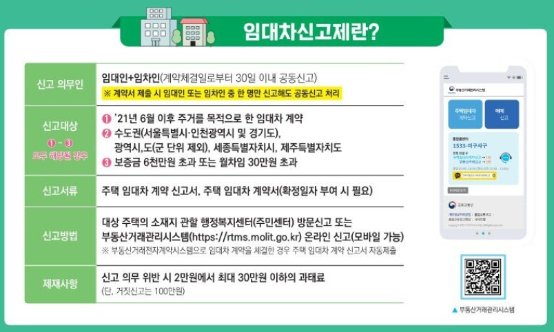 임대차 계약 체결, 갱신, 변경, 해제 등 주요 계약 행위가 발생하면 이를 30일 이내에 관할 지자체에 신고해야 하며,이를 위반할 경우 과태료가 부과될 수 있습니다.