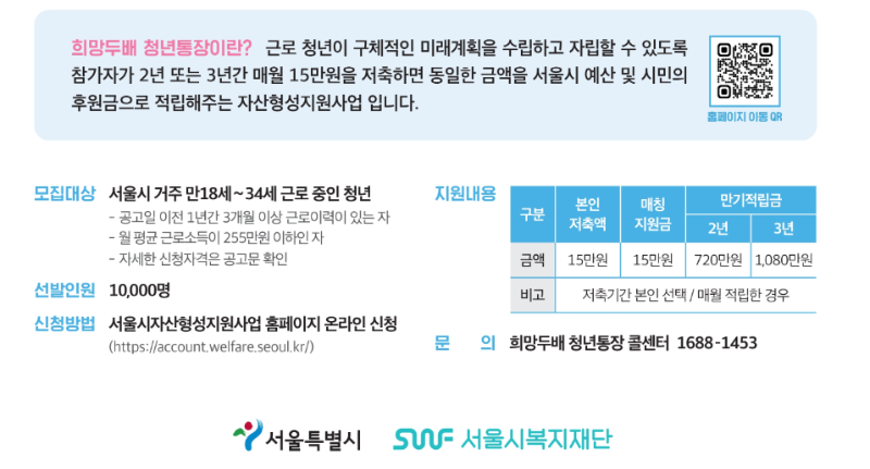 문의처: 희망 두 배 청년통장 콜센터 1688-1453